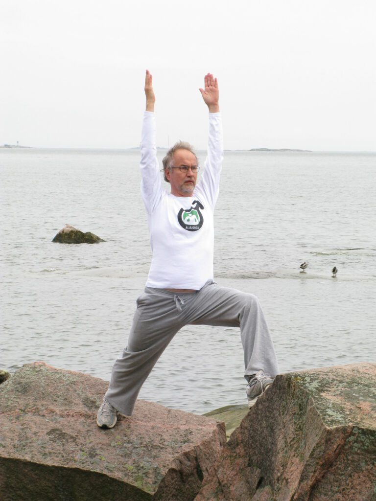 Tämän jutun julkaisemisen jälkeen kesällä 2026 äijäjoogaajien määrä ”räjähti” kymmenestä kahteenkymmeneen. Jutussa on hyvin kerrottu perustiedot äijäjoogasta ja ”isä” Veikko Tarvaisesta.
